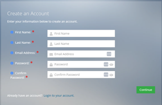 Step 2. On the Create an Account page, enter your information. If an account already exists with your email, the system will notify you, please revisit Step 1 for existing users to reset your password.