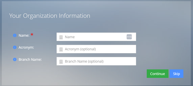 Step 3. (Optional) Enter organization information and select “Continue.”