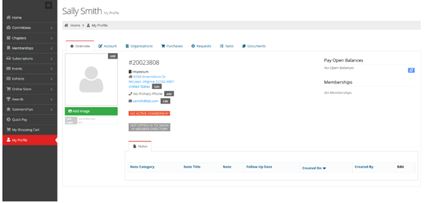 Step 4. You are now on your profile page. From this page you can update your information or navigate to other areas to purchase memberships, register for events, or access materials.